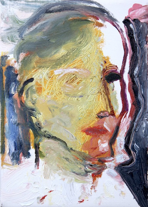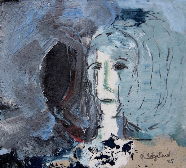 Visage, 2025, Huile sur carton mouflé sur bois, 13 x 13,3 cm