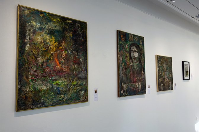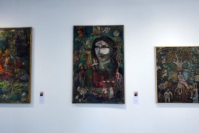 Titres des œuvres datées de 2018 et 2020 : Le premier matin du monde, Contes et mythologies, En Vert, Soudain l’apparition, L’arbre.