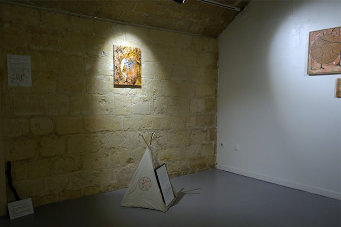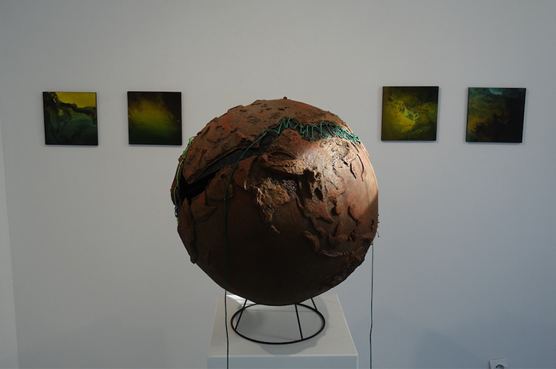 Puis, symboliquement, j’y ai adjoint ce fil, afin de réparer ses fissures et j’invite les visiteurs de l’exposition à participer à l’ouvrage.