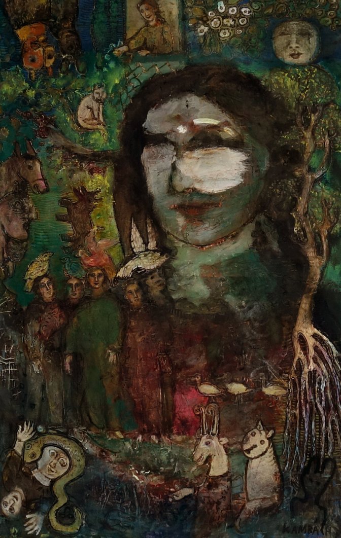 Mon travail fait référence aux miniatures persanes dans un univers onirique et symbolique, peuplé de personnages mythologiques issus de différentes cultures. Le bien et le mal, le bon et le méchant, le beau et le laid, tout est fruit de notre imagination et de notre enfance.