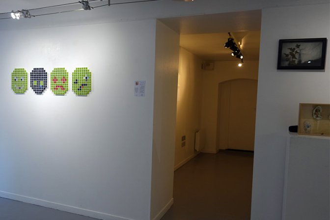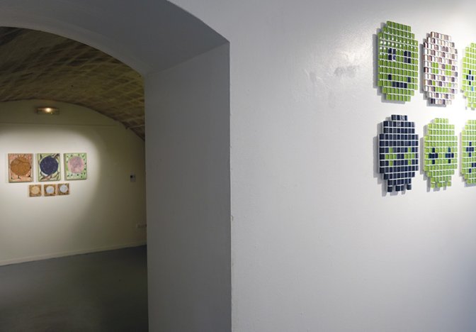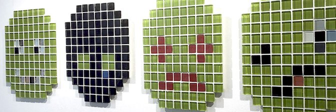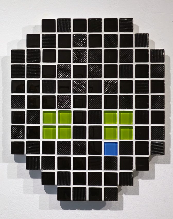 Avec cette série réalisée pour l’occasion j’avais en tête l’imagerie numérique, très pixellisée, des premiers jeux numériques comme Pong (1972), Space invader (1978) ou envore Pac-man (1980), et diverses pratiques historiques et contemporaines : la mosaïque byzantine, les masques africains, l’usage des carreaux de faïence par des artistes comme Vasarely, François Morellet, Jean-Pierre Raynaud ou encore l’art urbain de Franck Slama. D’une manière générale j’essaie de ne jamais faire la même chose, ce qui libère l’esprit pour trouver des matériaux et des formes qui s’articulent avec le sujet.