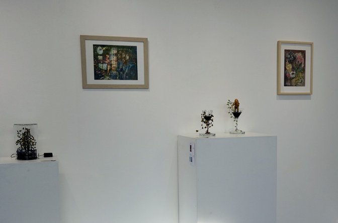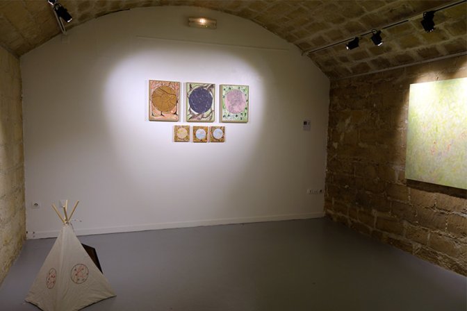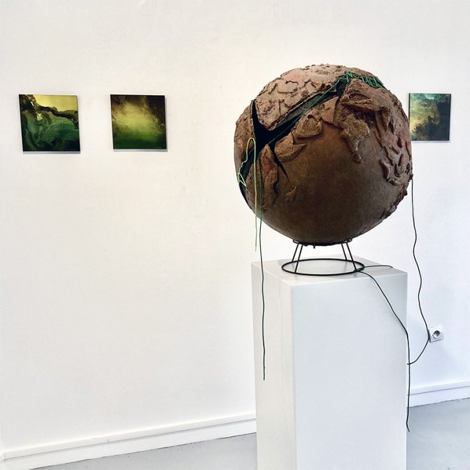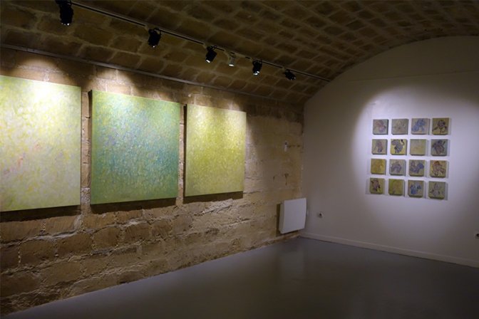Titres des œuvres (2020) : Verre pomme, vert raisin, vert horizon, au-delà de la forme ; Iris, la forme s’accroche et résiste