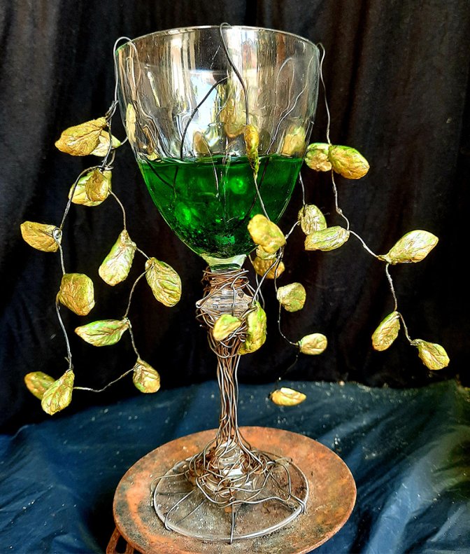 Jouer avec le thème, jouer avec les mots et se laisser guider par le processus créatif... Titres des œuvres toutes datées de 2020 : Green life, Danse du green, se mettre au vert, Nuit verte, Verre de green